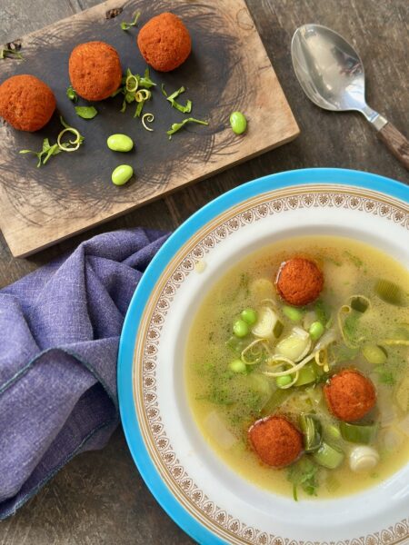 De franske løgsupper er ikoniske bistroklassikere med en fuldendt syntese af farve og sødme fra karamelli- serede løg, en skøn fedme og syre fra gratineret ost og sprøde teksturer fra brød. De tidligste opskrifter på en løgsuppe optræder i kokken Taillevents kogebog, “Le Viandier”, fra det 14. århundrede. Den klassiske løg- suppe, vi spiser her i moderne tid, er et ekko af fortiden, og det er en suppe, som alle samfundsklasser igen- nem århundreder har spist. En moderne fransk løgsuppe gratineres med rigelige mængder revet ost. Suppen var i Frankrig kendt som en “gratinée des Halles” opkaldt efter det sagnomspundne gamle fødevaremarked i Paris, Les Halles, der blev revet ned i starten af 1970’erne.